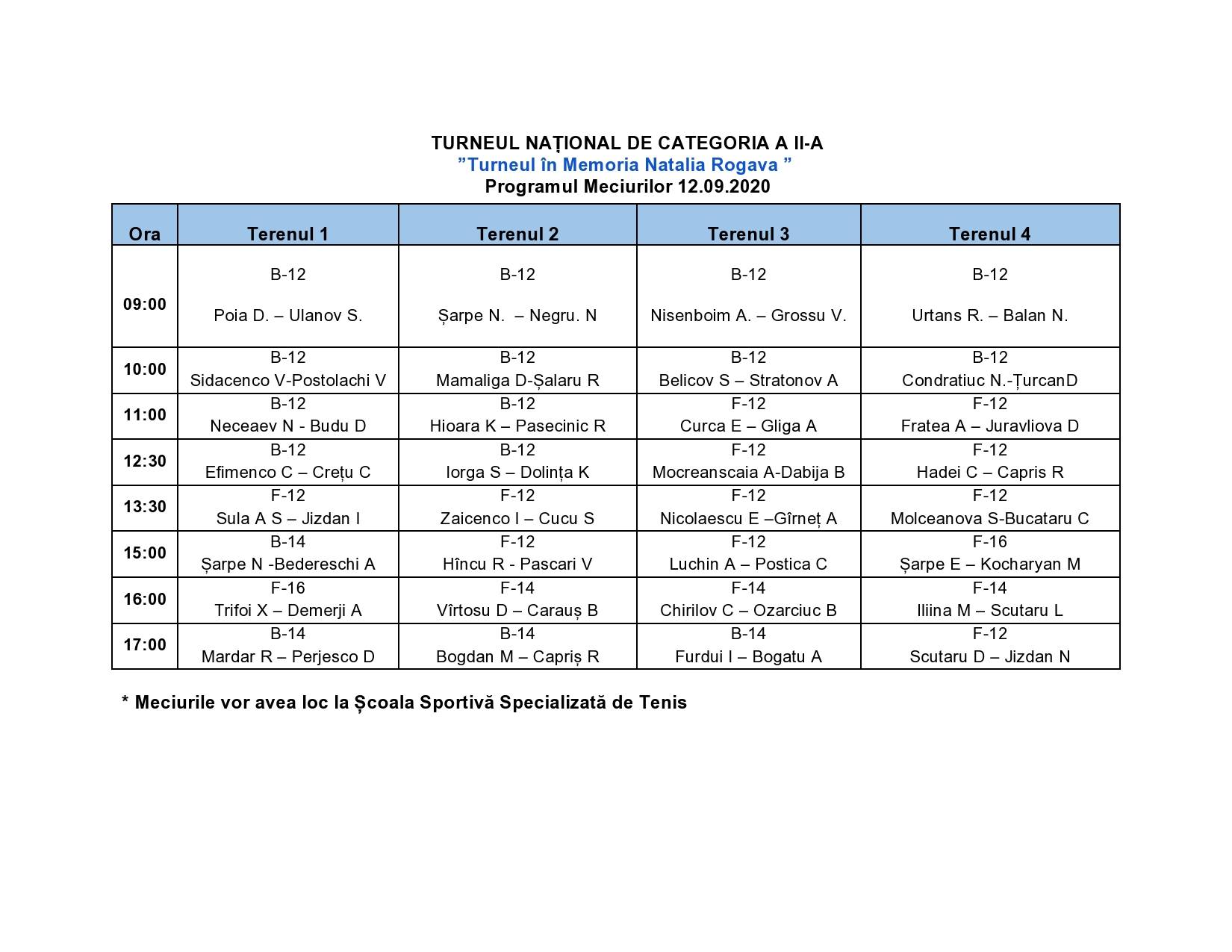 Orarul de joc pentru 12 septembrie la ”Turneul în memoria Nataliei Rogova”, ediția 2020